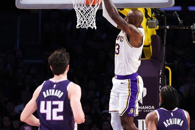 全場失誤不斷,多次讓湖人打成反擊。雖然有13分4助攻2搶斷進(jìn)賬,但6次失誤實在是辣眼。而且這段時間,場邊的湖人球迷還在不斷用言語去干擾威少,雙方互噴垃圾話。不過,后面這位球迷就被驅(qū)逐出場了??吹竭@里大家應(yīng)該也能明白了,國王隊今天并沒有一個進(jìn)攻強(qiáng)點,德羅贊也甚是低迷。所以湖人隊今天贏得沒什么壓力,國王隊基本上沒有打出過什么出彩的反擊。詹姆斯今天上演了多次扣籃,根本沒有一點馬上41歲的樣子。全場表現(xiàn)極其高效,13投11中,以84.6%的命中率砍下24分5助攻3籃板2搶斷,正負(fù)值高達(dá)+20!而東契奇,34分7助攻5籃板3搶斷,防守端也格外賣力。