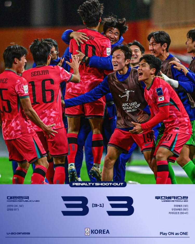 2月24日訊 U20亞洲杯1/4決賽,韓國U20和烏茲別克斯坦U20在常規(guī)時(shí)間戰(zhàn)成3-3,最終通過點(diǎn)球大戰(zhàn)韓國U20總比分6-4淘汰烏茲別克斯坦U20,獲得世青賽資格。