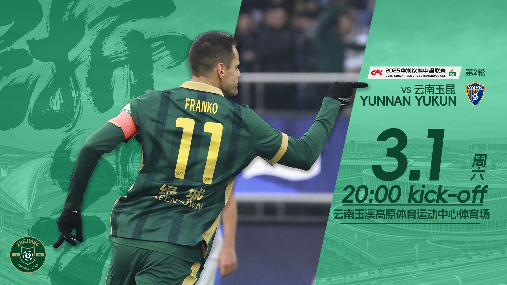 本場比賽將在云南玉昆西高原體育場進行。此前首輪中超云南玉昆0-2不敵北京國安,浙江則是1-1戰(zhàn)平大連英博。
